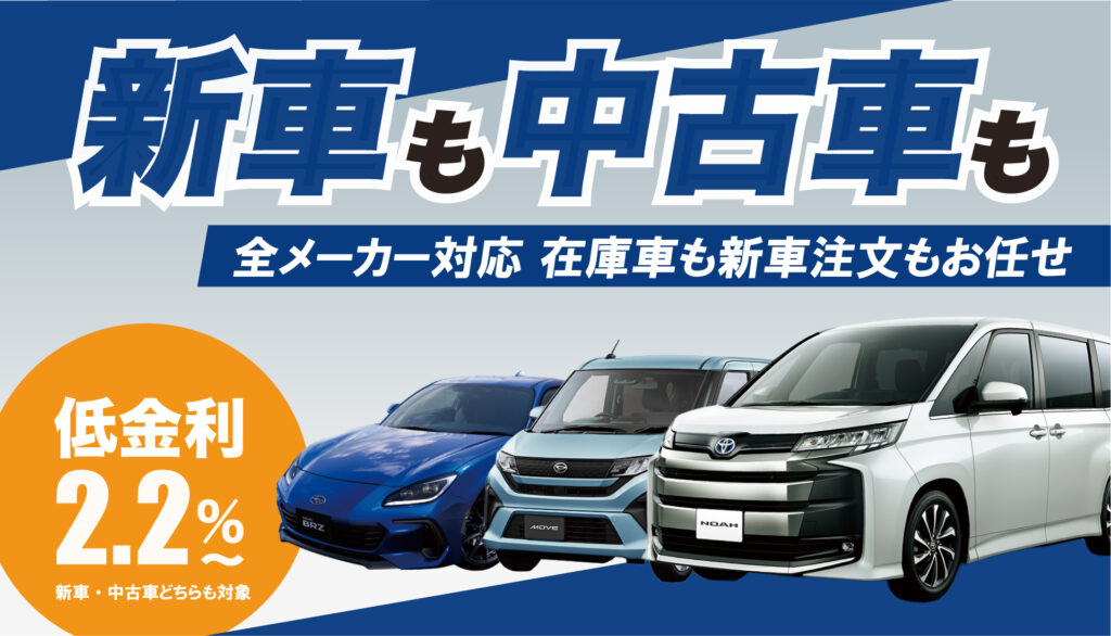 新車・中古車ともに、低金利ローンで安心価格のご案内です。
